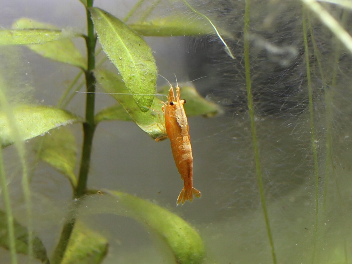 我が家の30cm水槽にいるオレンジチェリーシュリンプの紹介である。小型のエビで、鮮やかなオレンジ色が特徴。