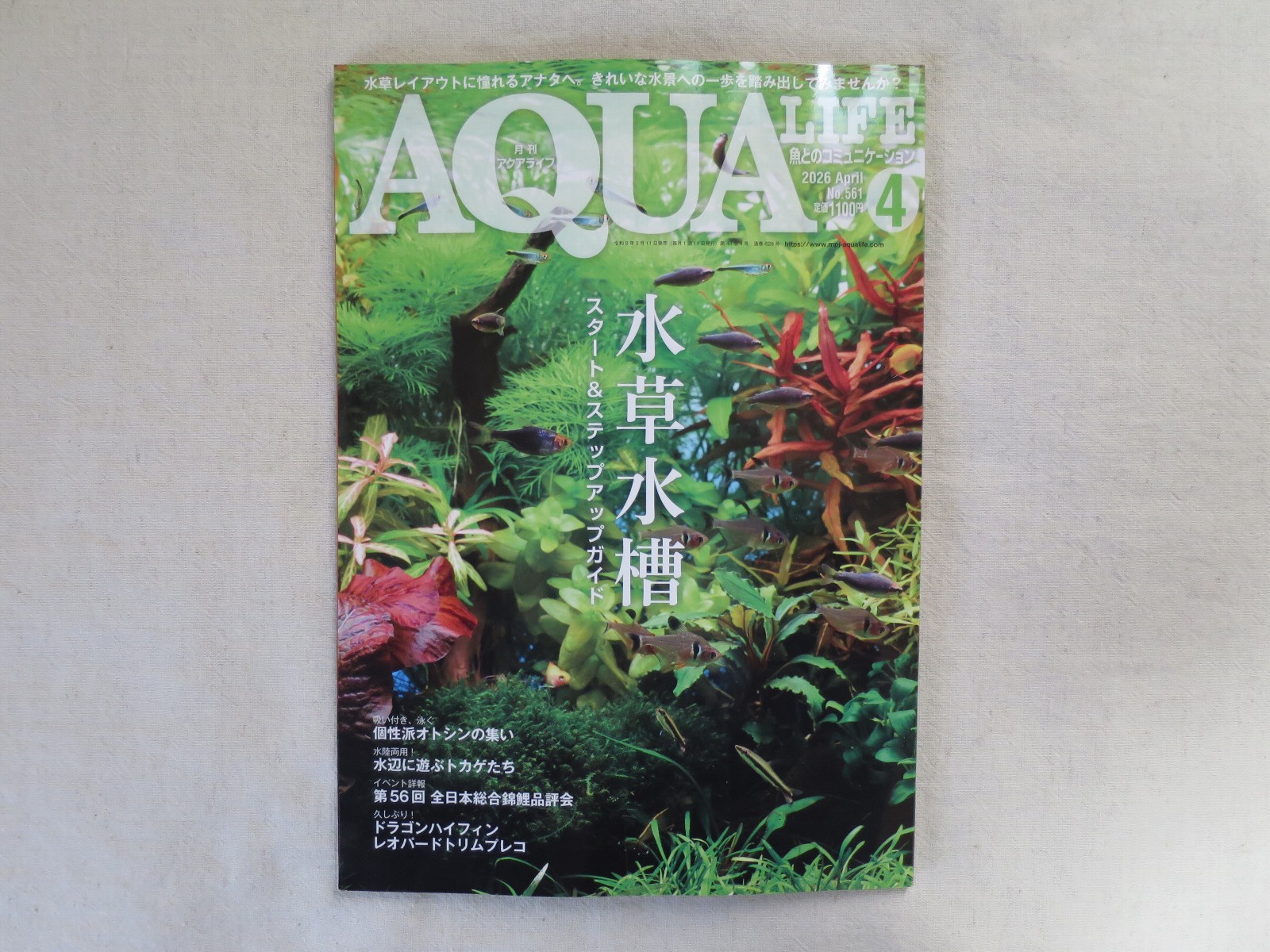 今回は出版社エムピージェーから発行されている雑誌「月刊アクアライフ 2026年4月号」の紹介となる。発売された日は2026年3月11日である。