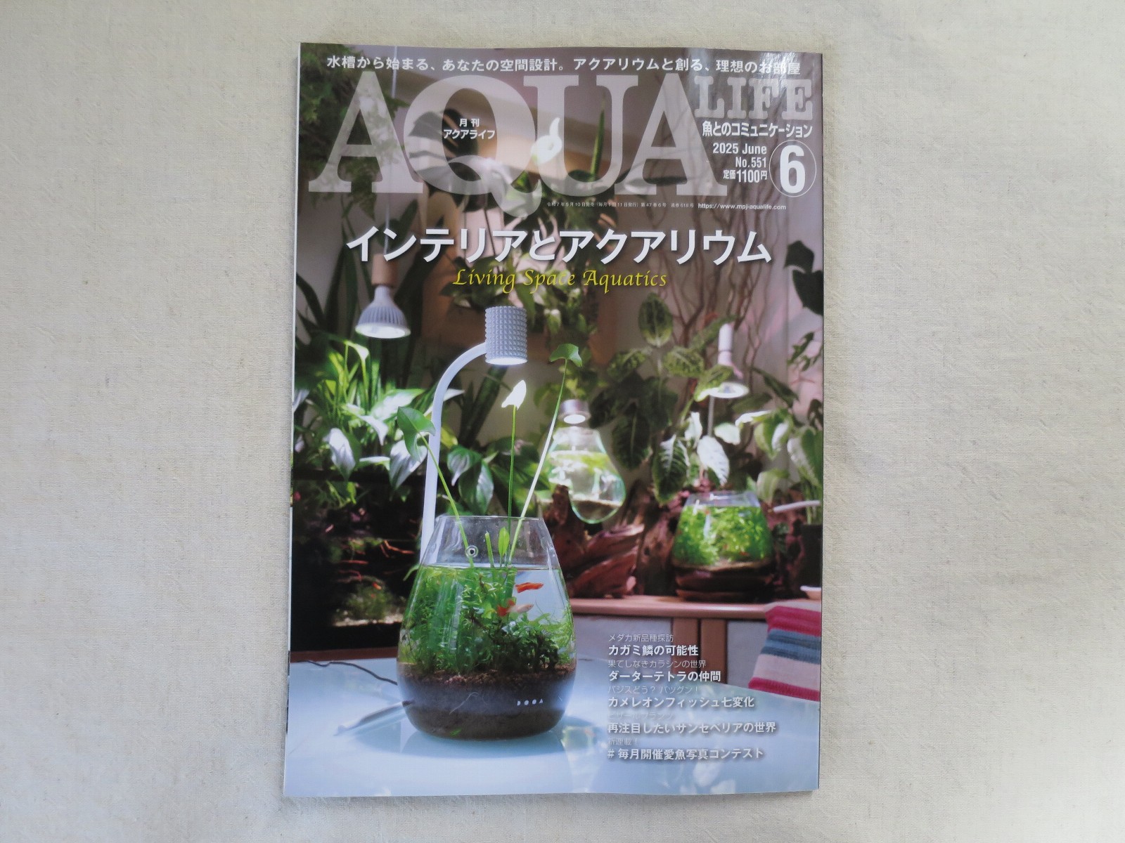 今回は出版社エムピージェーから発行されている雑誌「月刊アクアライフ 2025年6月号」の紹介となる。サブタイトルは「インテリアとアクアリウム」である。