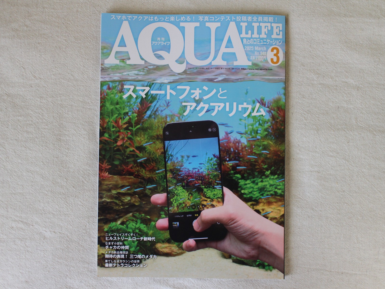 今回は出版社エムピージェーから発行されている雑誌「月刊アクアライフ 2025年3月号」の紹介となる。サブタイトルは「スマートフォンとアクアリウム」である。