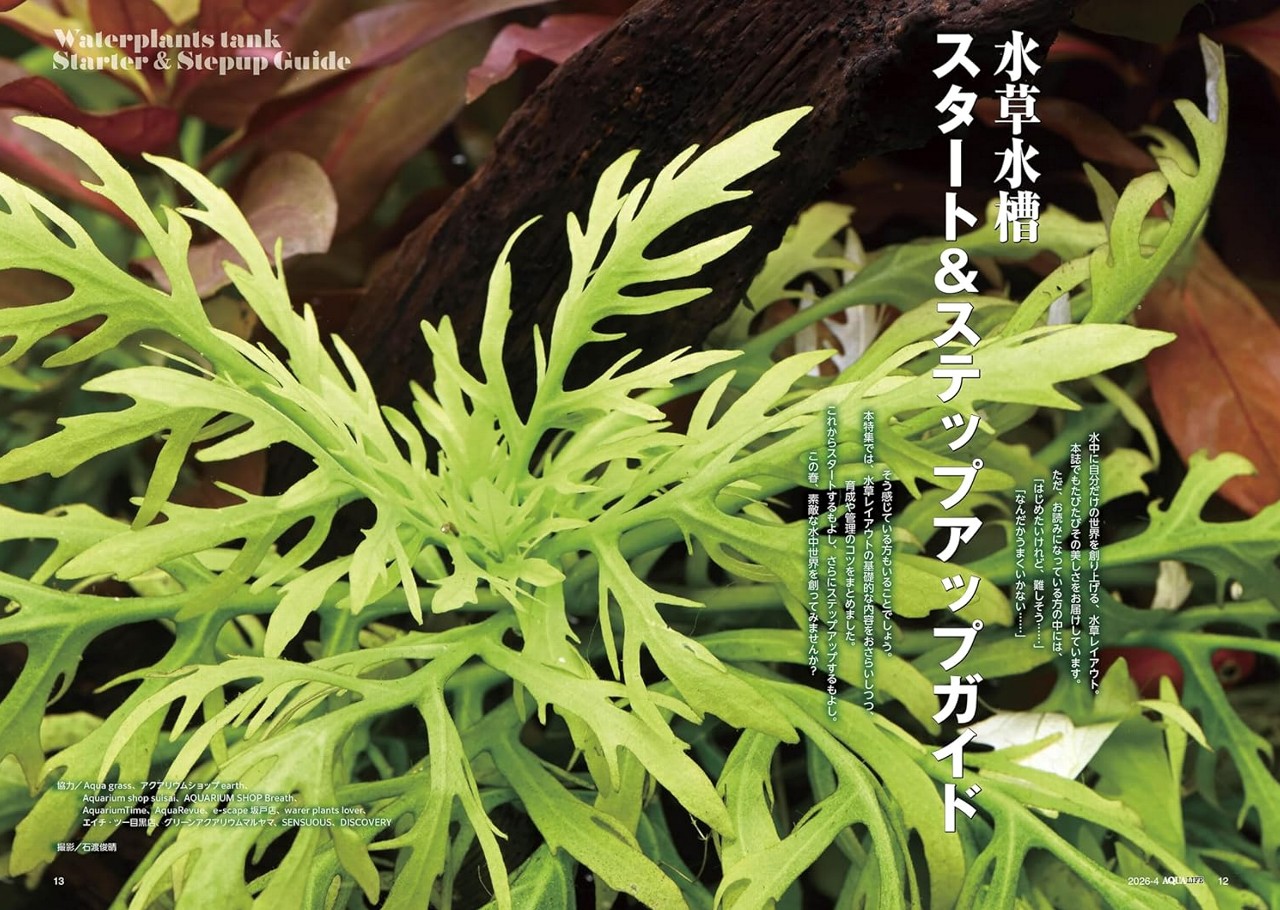 サブタイトルは「水草水槽 スタート&ステップアップガイド」で、本の大きさは横21cmx縦29.7cm、本の長さは130ページ、価格は税込みで1,100円となっている。アクアライフの創刊は1979年のこと。月刊で発行され、熱帯魚や水草をはじめとした水辺の生物の飼育情報を掲載している。