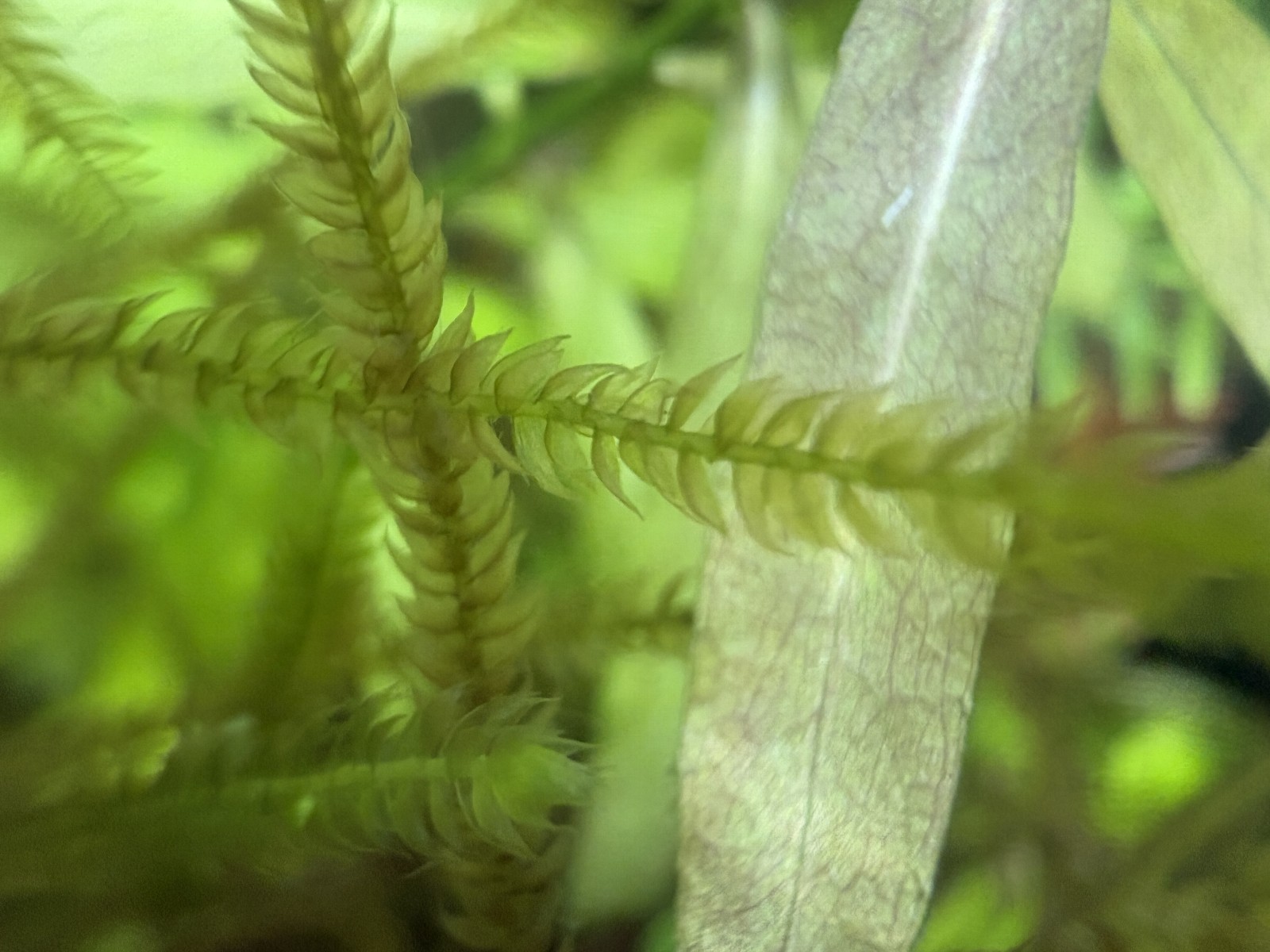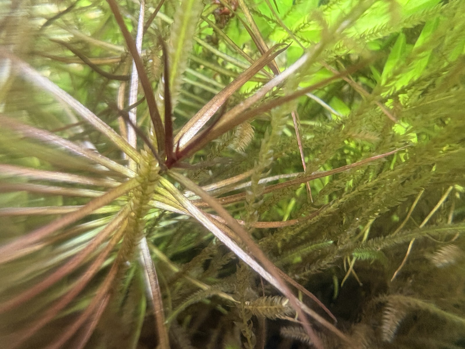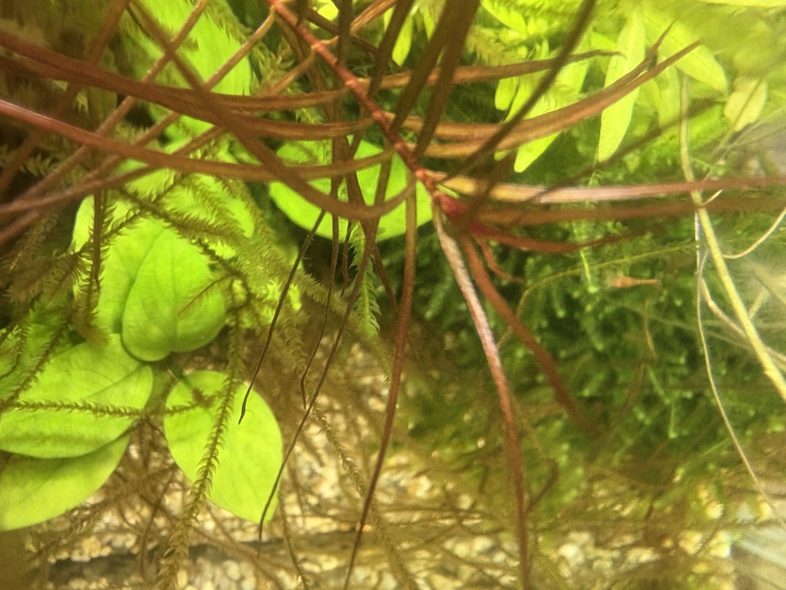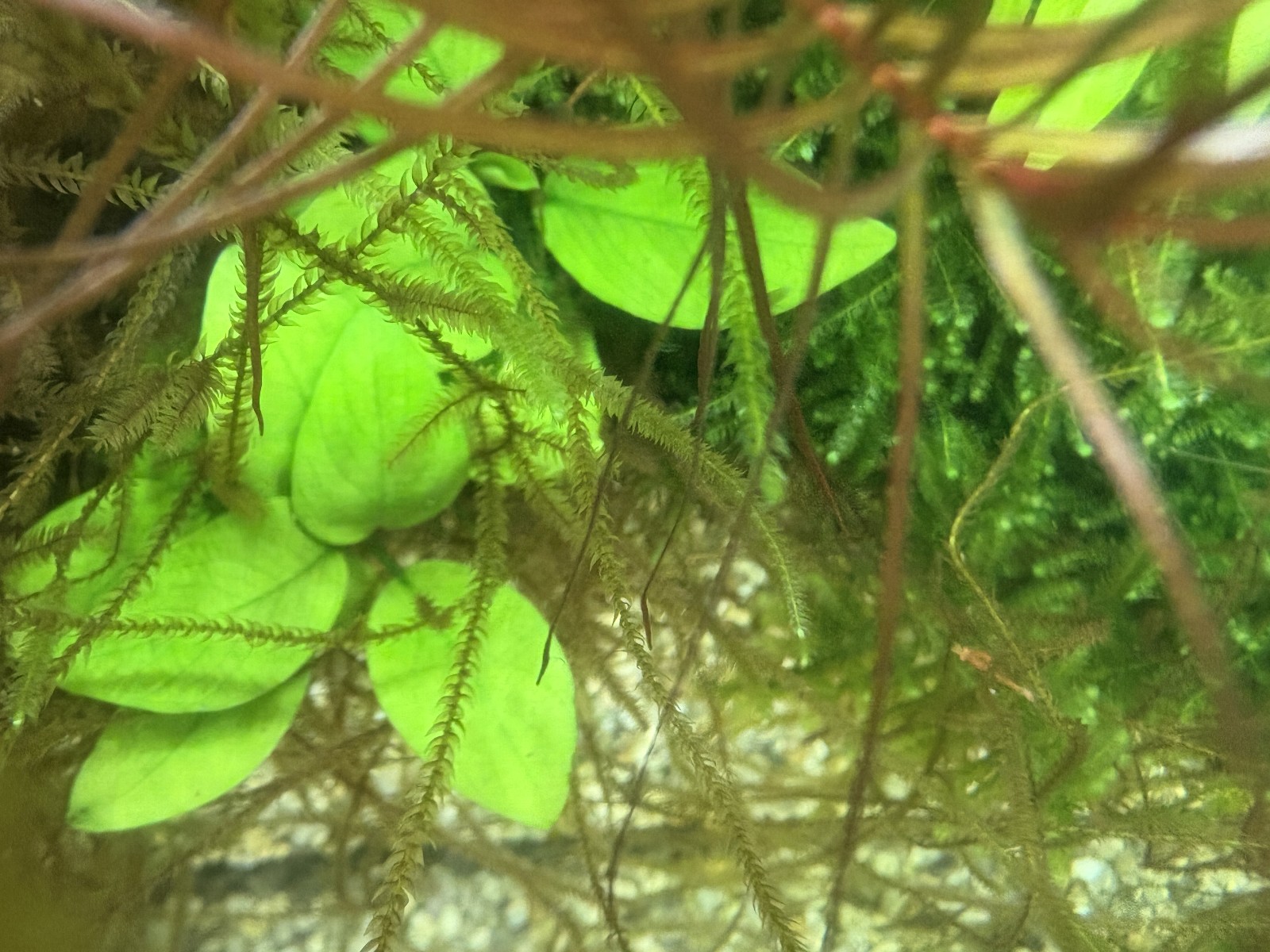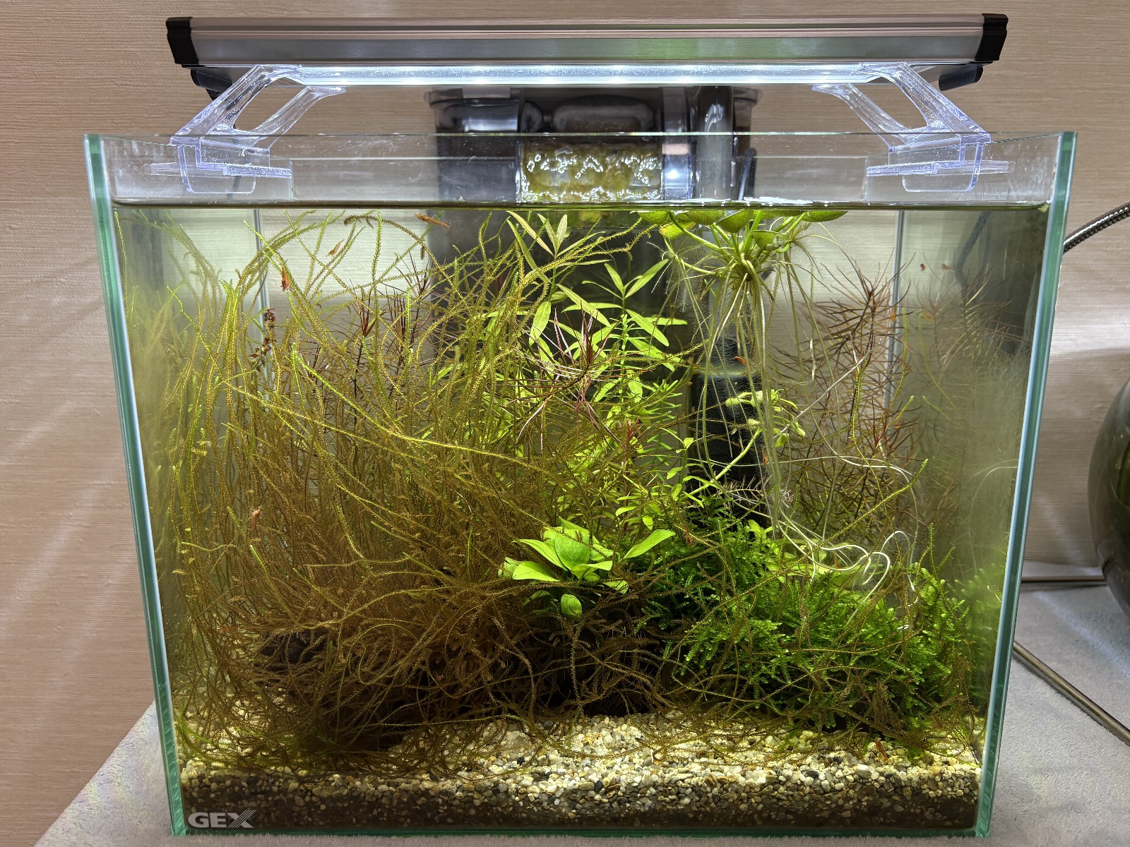 写真のほうはきれいに撮れたものもあるが、ボツになった写真も多い。写っているのはニードルリーフ・ルドウィジア、ウィローモス、ウィーピングモス、ハイグロフィラ・ポリスペルマ、アヌビアス・ナナ、オレンジチェリーシュリンプあたりである。