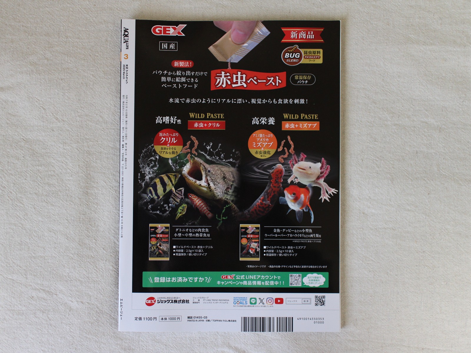 発売日は2025年2月10日、本の大きさは横21cmx縦29.7cm、本の長さは130ページ、価格は税込みで1,100円となっている。アクアライフの創刊は1979年のこと。月刊で発行され、熱帯魚や水草をはじめとした水辺の生物の飼育情報を掲載している。