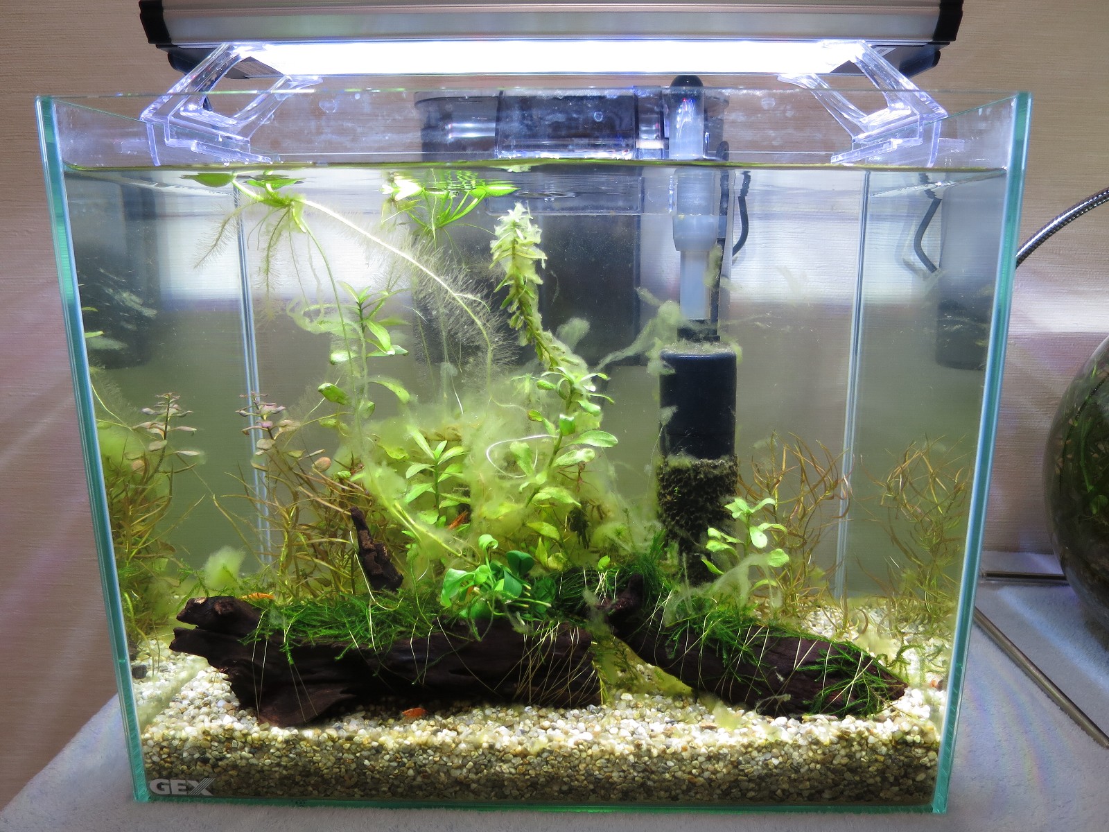 下の画像は購入したニードルリーフ・ルドウィジアを入れたばかりの頃の写真である。左側と右奥に写っているが、最初はひょろひょろで小さかったが他の写真では半年以上が経過してだいぶ大きく成長した。