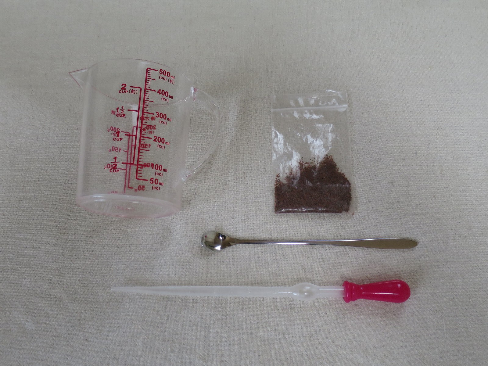 以前はプラスチックのマドラーのようなものを使用していたが折れてしまいステンレス製のこの商品にたどり着いた。同じようなものなら問題ないと思うがこれは貝印の「エミリア マドラーS」という商品である。ちょうどいいサイズのものを探すのに手間がかかった。餌はボトル水槽に付いていたGEXの「ワイルドフレーク プロバイオミニ」の試供品を別の袋に入れている。